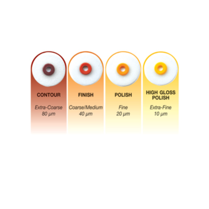 I ricambi Kerr OptiDisc sono lo standard di riferimento per i professionisti che esigono una finitura impeccabile su restauri in composito, amalgama, vetroionomeri e metalli preziosi. Grazie al loro design sottile e alla varietร di grane disponibili, permettono di raggiungere una brillantezza naturale con un controllo totale.