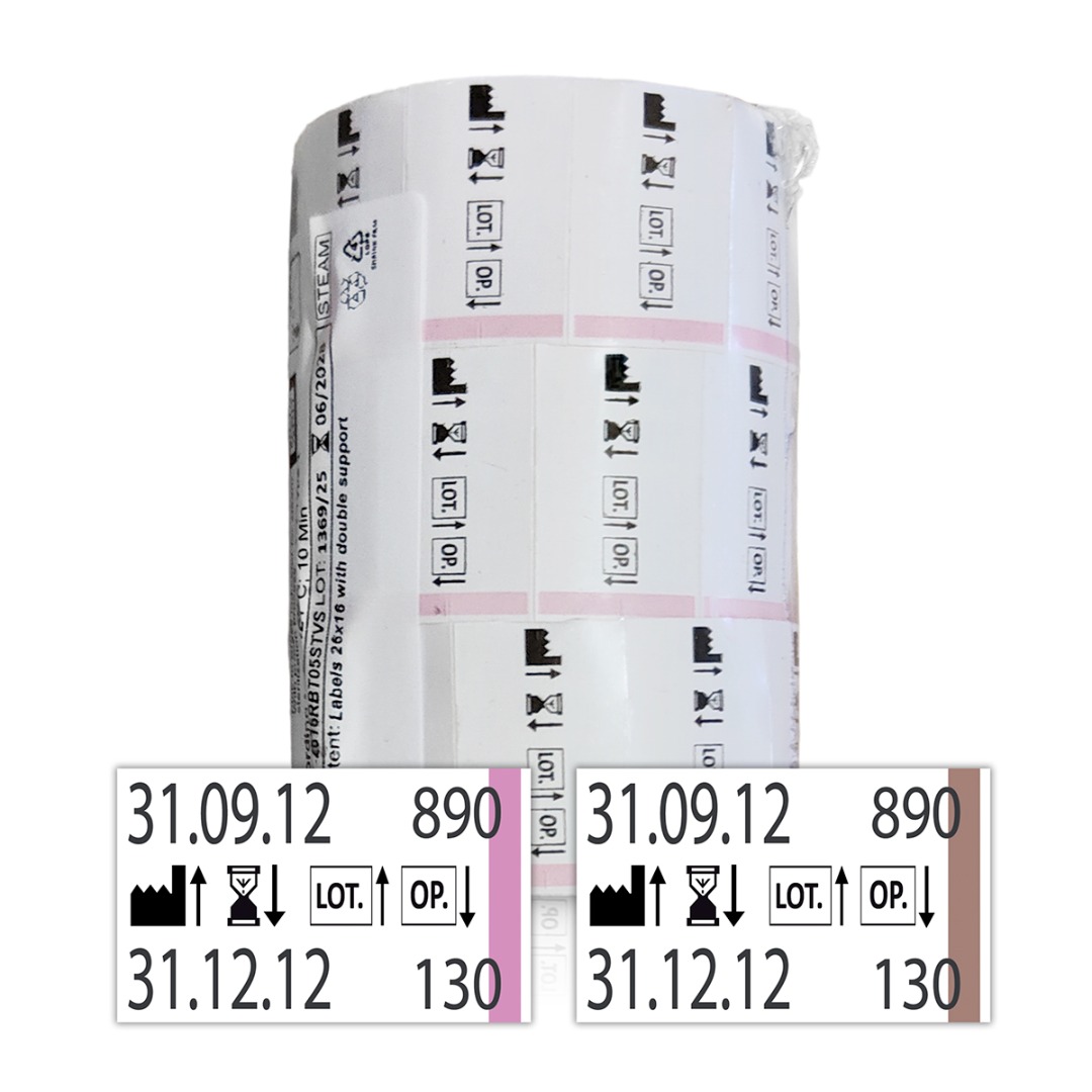 Etichette a 2 linee di stampa con indicatore di processo compatibili con Mark 3, Mark 4 e Printex Medical.