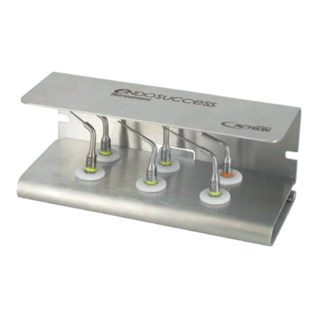 Il successo di un ritrattamento dipende dalla capacità di pulire completamente il sistema canalare senza indebolire la struttura dentinale. Gli inserti del kit EndoSuccess lavorano con un movimento vibratorio lineare, riducendo il rischio di deviazioni o perforazioni.
