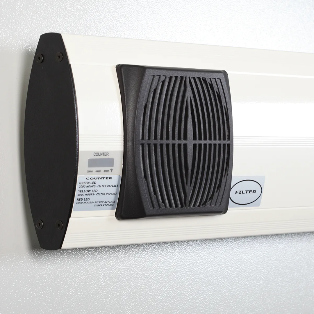 Efficacia contro gli Aerosol: Mentre i filtri HEPA bloccano le particelle, gli UV-C distruggono la carica virale, evitando che i patogeni rimangano “vivi” sul filtro.