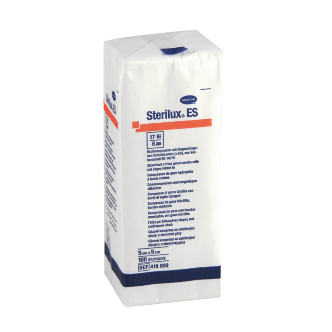 Garze Sterilux ES in puro cotone misura 5 x 5 cm. Non sterili confezione100 pezzi – codice 418800 Hartmann