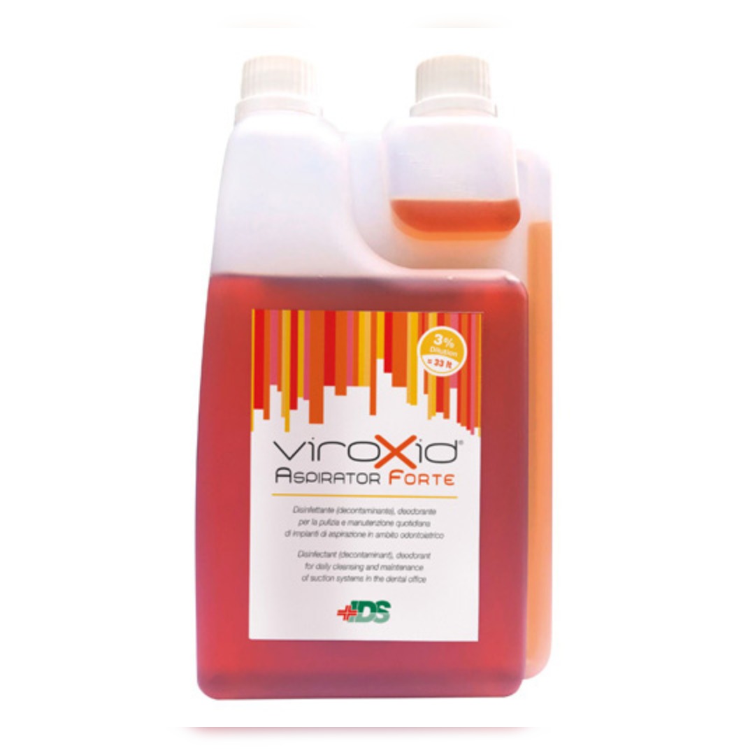 VIROXID ASPIRATOR FORTE è una soluzione acquosa disinfettante ad ampio spettro d’azione a base di derivati fenolici, adatta per la disinfezione, deodorazione, manutenzione e contemporanea pulizia di impianti di aspirazione per l’uso odontoiatrico.