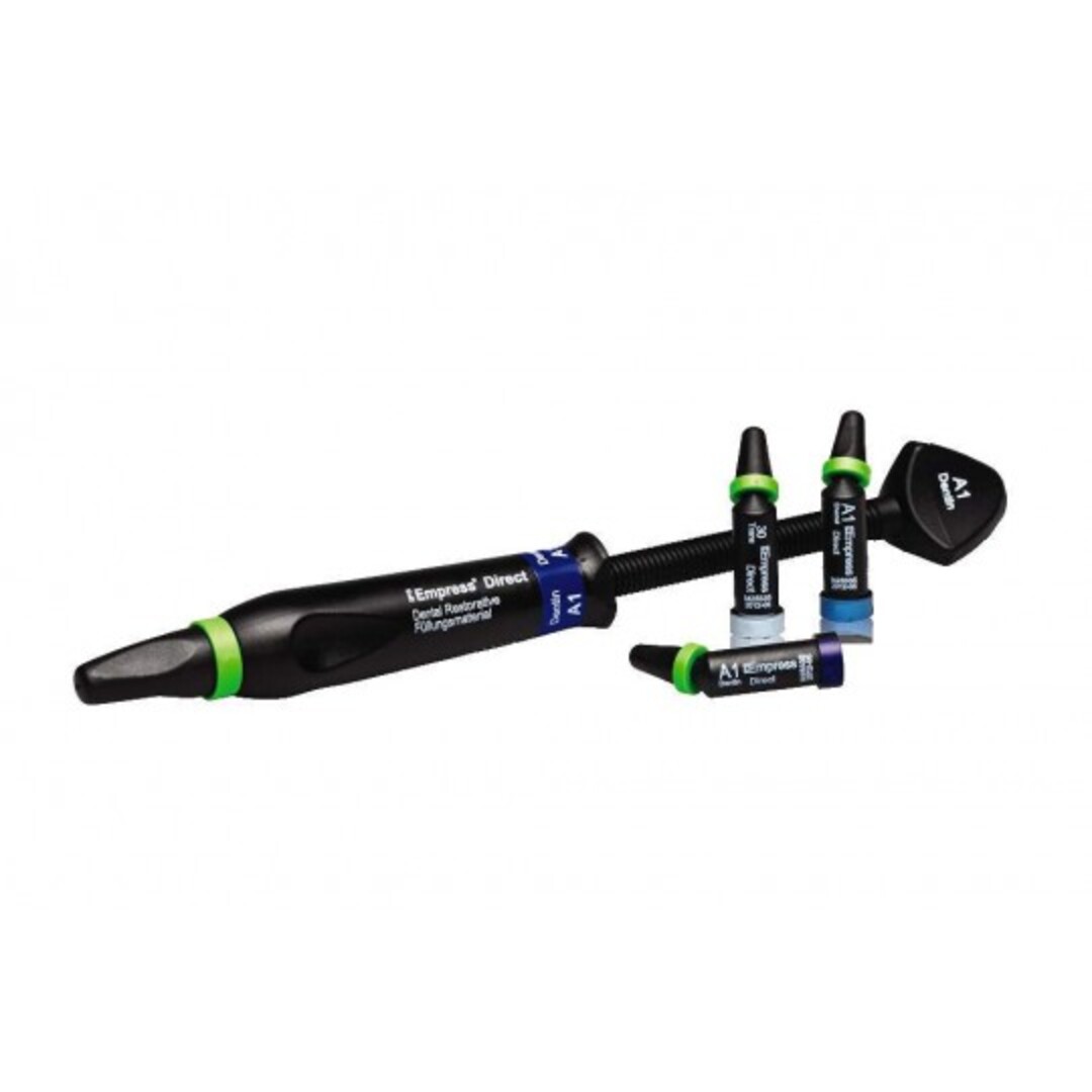 IPS Empress Direct in siringa 3 grammi colore A2–D dentin – codice 627221 Ivoclar VivadentComposito nano–ibrido universale, altamente estetico, indicato per la terapia restaurativa diretta. Grazie all’opacità naturale, la fluorescenza e l’opalescenza del materiale lucidabile a specchio, si possono realizzare restauri estetici naturali.