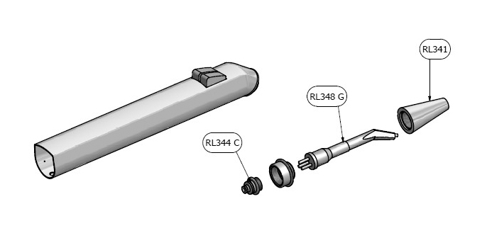 Impugnatura guscio inox angolata + puntale + cono + 2 pulsanti modulatori della siringa aria acqua modello Minilight RL451C Luzzani