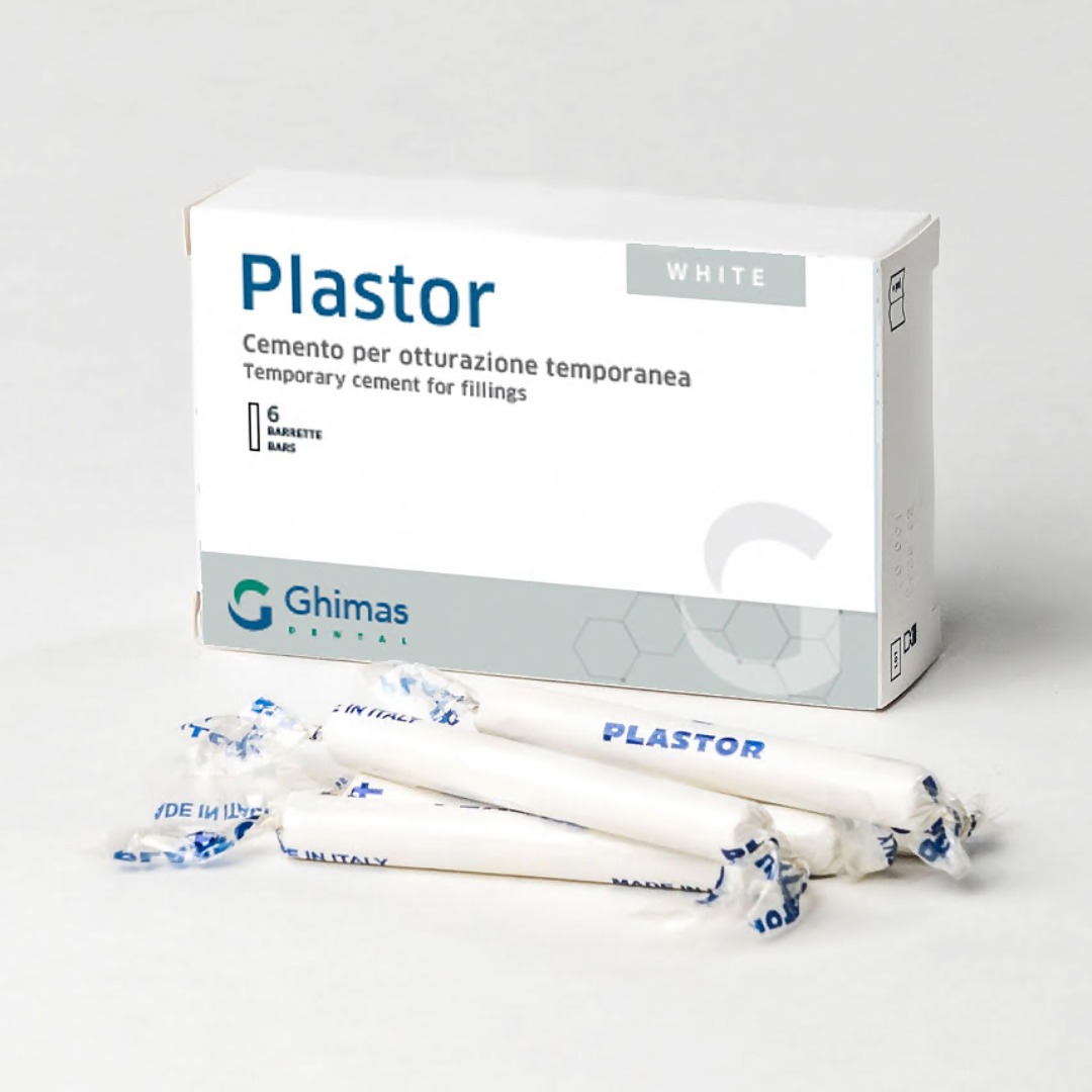 PLASTOR indurisce rapidamente a contatto con la saliva, non si disgrega, resiste alla masticazione, si applica e si toglie con molta facilità, non è conduttore di calore impedendo così stimoli termici sulla polpa. Utilizzabile come il Cimpat